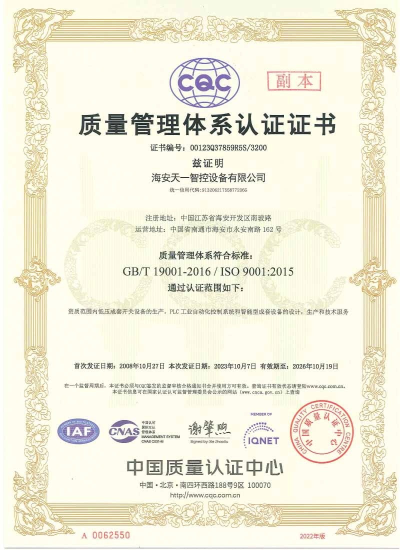 質(zhì)量管理體系認(rèn)證證書(shū)